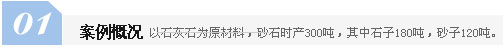 以石灰石為原材料,砂石300T/H,其中石子180噸,砂子120噸。